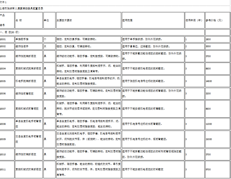 附件:1.《上海市残疾军人康复辅助器具配置目录》