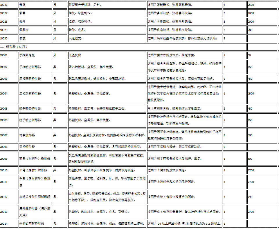 (二)配置范围:包括假肢、矫形器、移动辅助器具、生活自理和防护辅助器具、信息交流辅助器具、其它辅助器具等。