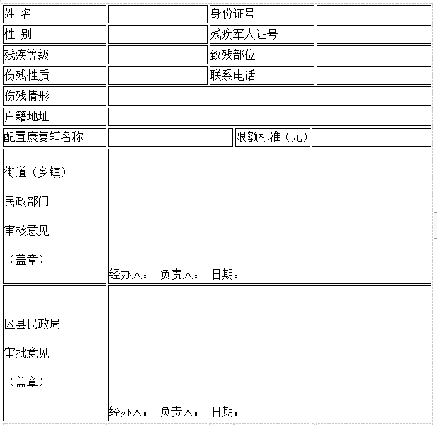 上海市残疾军人配置(更新、维修)康复辅助器具申请表