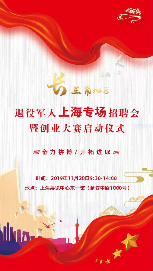 重磅来袭!长三角地区退役军人上海专场招聘会暨创业大赛启动仪式活动邀您参加!